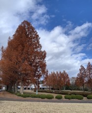 Early birds get the worm6! I got there a bit early and had a chance to see the rows7 of Metasequoia trees. Finally I saw them with my own eyes. I knew that Tohoku University planted them after they got them from the U.S. a long time ago but I didn’t know where they were and I hadn’t see them. They were just gorgeous! Their leaves were turning orange and they were breathtaking8!